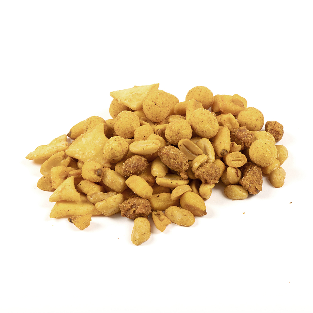 51% peanut, 20% corn, sunflower oil, potato starch, corn powder, corn starch, wheat flour, seasoning (spices (chili powder, paprika powder), salt, maltodextrin, onion powder, black pepper, tomato powder, breadcrumbs (wheat flour, yeast, salt), paprika powder, garlic powder, cumin, oregano, cayenne pepper, natural flavouring, colour: paprika extract, acidity regulator: citric acid, paprika extract, natural turmeric extract), salt, icing sugar, cheese seasoning (cheesepowder (whey powder (milk), cheesepowder (milk, starch, starter culture), sunflower oil, maltodextrin, milk protein, yeast extract, cheese flavouring, stabiliser: E339, acid: malic acid, acidity regulator: citric acid, salt), salt, tomato powder, sugar, sweet chili pepper, yeast extract, onion powder, colour: paprika extract), garlic powder, sugar, wheat starch, yeast extract, tomato powder, colours: E100; paprika extract; carotenes, onion powder, acidity regulators: citric acid; E262, cumin, chili powder, paprika powder, oregano, natural flavouring (wheat), natural oregano flavouring, rosemary extract, beetroot juice concentrate, raising agent: E500ii.